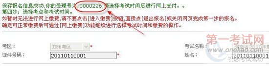 阶段一:从[选择考区、考试]到[选择考试科目],这个阶段为填写考生报名的基础信息和选择考试科目。提交报名资料后系统会保存你的报名信息,如不确定是否能进行网上缴费,可暂时不进行后面的报名步骤,待确定开通银联的网上银行后你可通过[网上缴费]完成剩余的步骤,无需再重新报名。