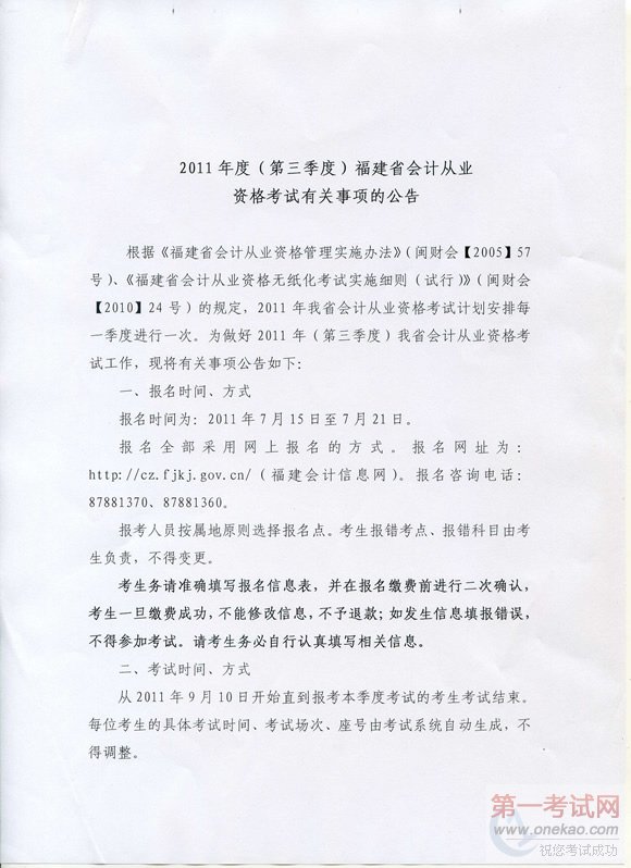 2016年第20批安徽淮北会计从业资格考试报名时间