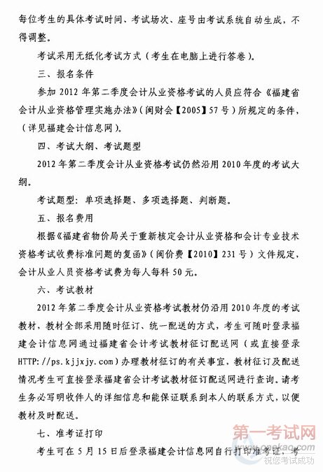2016年第20批安徽淮北会计从业资格考试报名时间