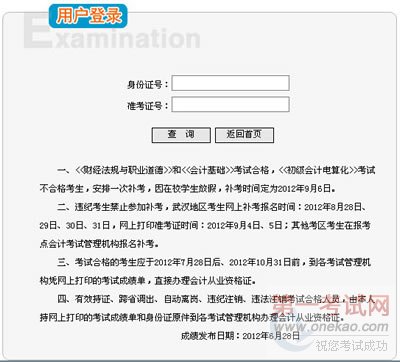 湖北省2012年上半年会计从业资格考试成绩查询入口