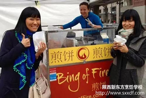 美食的魅力无法阻挡!当特色小吃走向世界,也能风靡全球。学特色小吃,美国姑娘也能发家致富。如果你正打算创业或有意向学厨师、学烹饪,就快来陕西新东方烹饪学校报名吧! #