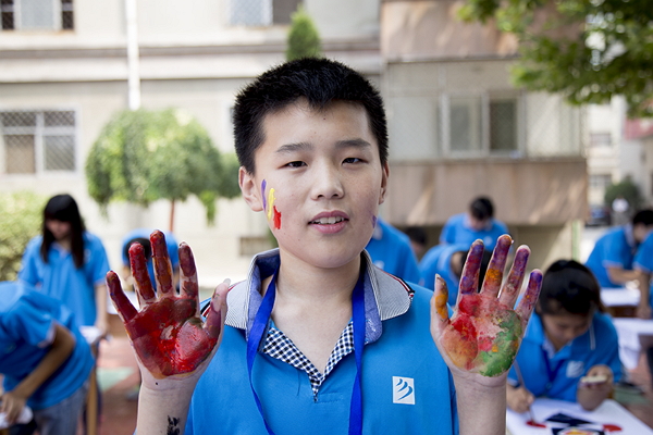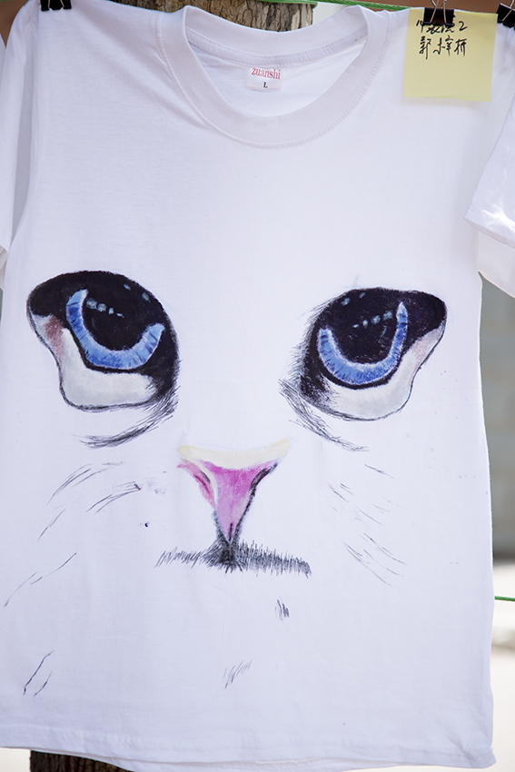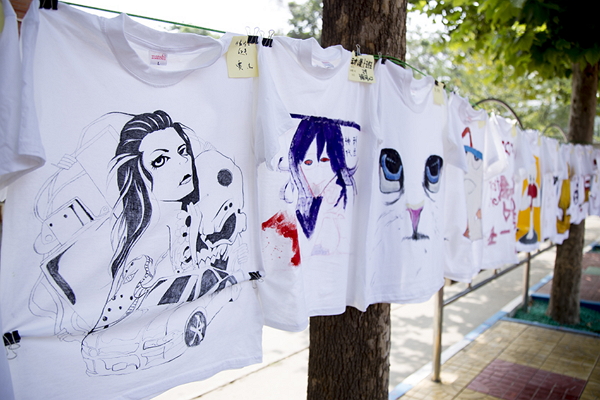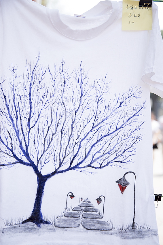 骄阳下的同学们执起画笔,随心所引,在洁白的T恤上画出心中所爱,每个人都在用心描绘自己的梦想。这其中有憨态可掬的熊猫,古灵精怪的叮当猫,单纯可爱的天线宝宝,流行的各种动漫人物,亦有红领巾的童年画像,在这里,选手们无需顾虑是否拥有专业的绘画基础,不必在意他人考究的目光,只需有独一无二的创意,只要敢于展现与众不同的才思便可。