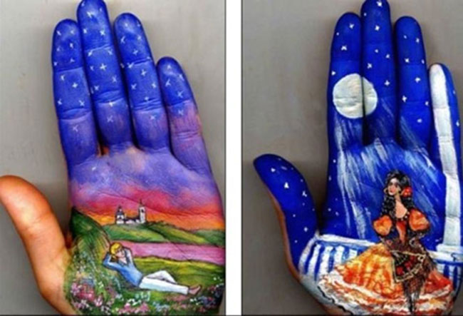 俄罗斯艺术家斯维特拉娜-科罗索娃让自己的手掌充当画布,描绘出一个可爱而美丽的童话世界。