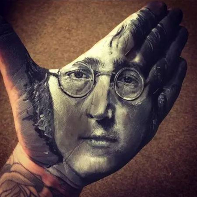 艺术家Russel Powell专注于在手掌上作画,本来平淡无奇的画作因为手掌的纹理显得立体形象,连人物的表情都生动起来。