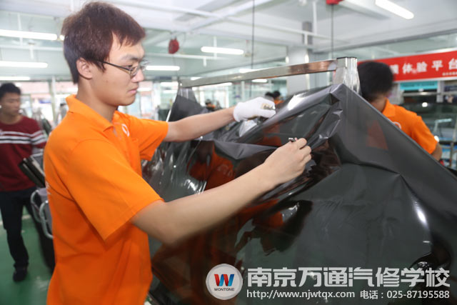 南京万通设有专业的汽车贴膜实训教室,拥有各类高级汽车膜供学生实训使用,快和小编一起去看看万通的汽车贴膜实训课吧!